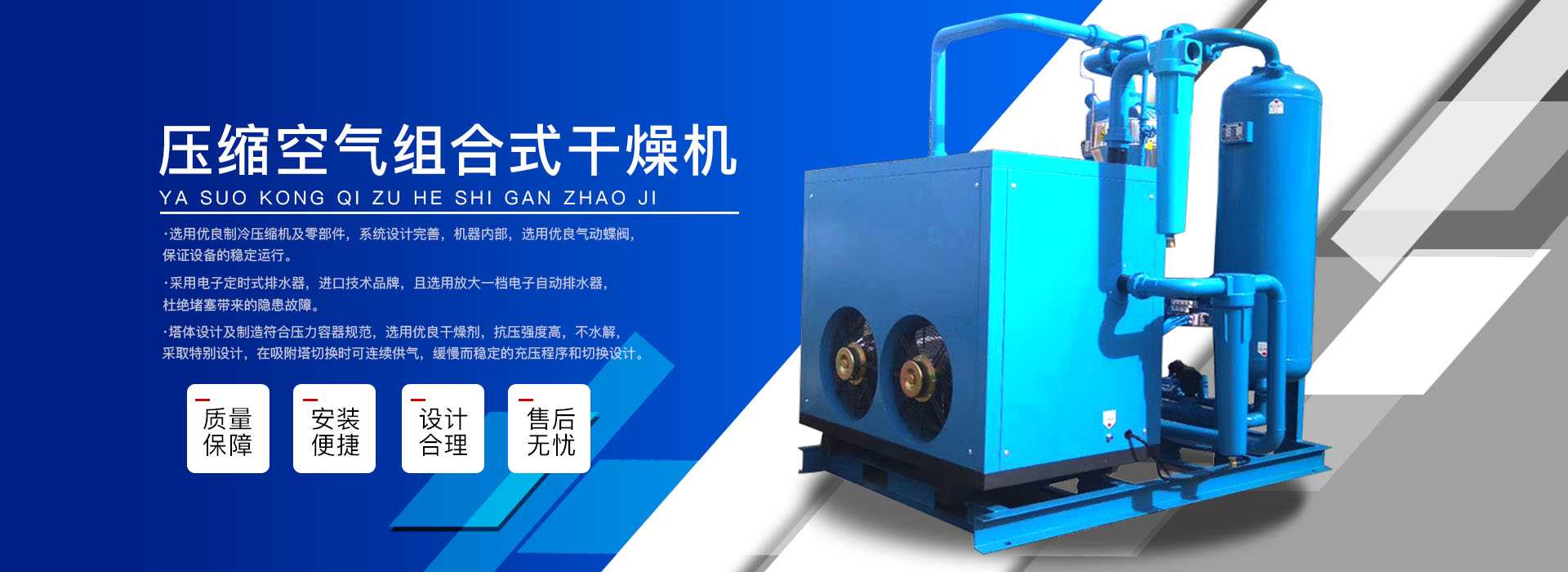 本公司系中國科學(xué)院、重鋼院、機電技術(shù)設(shè)計院、氣動技術(shù)研究所等相關(guān)專家合作的具有雄厚技術(shù)力量的高科技實體,是一個專業(yè)從事各種氣體干燥凈化及分離純化設(shè)備研究開發(fā)及推廣應(yīng)用的高科技公司。公司積多年對壓縮空氣凈化設(shè)備的生產(chǎn)技術(shù)和銷售經(jīng)驗,并在消化吸收國外先進技術(shù)的基礎(chǔ)上,結(jié)合國內(nèi)實際工況特點,研制出適合國內(nèi)外廣大用戶的“滬盛”牌HSD系列壓縮空氣冷凍式干燥機、吸附式干燥機、后部冷卻器、預(yù)冷機組、工業(yè)用冷水機組和HF系列壓縮空氣高效精密過濾器(國產(chǎn)濾殼,美國漢克森HANKISON濾芯)等13大系列計300多種規(guī)格產(chǎn)品。并且新研發(fā)出燥式干器, 廣泛應(yīng)用于電力、冶金、電子、機械、石油、化工、汽車制造、紡織、化纖、輕工、造紙、橡膠、儀表、食品、空氣、卷煙、生物、醫(yī)藥、日化等行業(yè),在國內(nèi)同行業(yè)中一直處于領(lǐng)先地位。